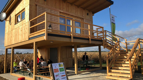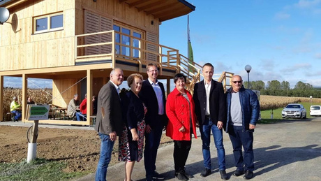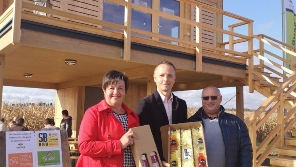 Nach einer kurzen Begrüßung durch unseren Geschäftsführer, Michael Polleres-Vogler, besichtigten die Gäste sowohl das fertiggestellte Ferienhaus LINUS als auch unser kleinstes Modell, ROBIN und zeigten sich von der gemütlichen Atmosphäre im Holzhaus begeistert. Besonders erstaunt waren alle davon, dass sich im Ferienhaus ROBIN auf nur 18 m² ein vollständig eingerichtetes Appartment ausgeht (inkl. Küche, Wohn-/Essbereich, Bad mit Dusche und WC).