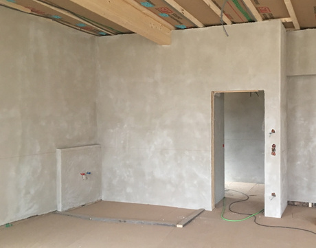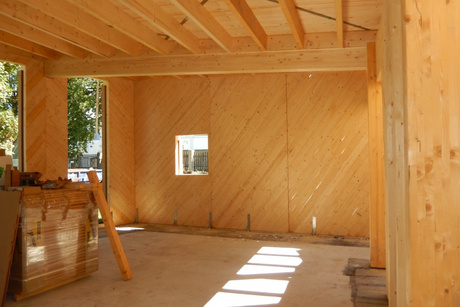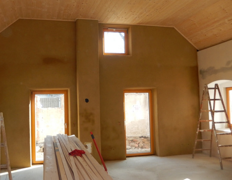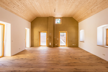 Ein Zubau erfolgte in Holzriegelbauweise mit Zellulosedämmung. Für ein optimales Raumklima wurde innen Lehm- bzw. Kalkputz verwendet.