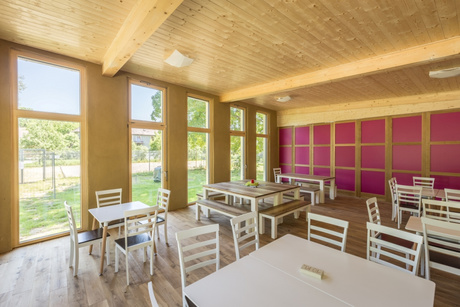 Das ehemalige Tennishaus bot eine gute Ausgangsbasis für die Umgestaltung und Erweiterung. In enger Zusammenarbeit mit dem Schulteam wurde in kurzer Zeit eine sinnvolle Nutzung des Gebäudes erarbeitet.
