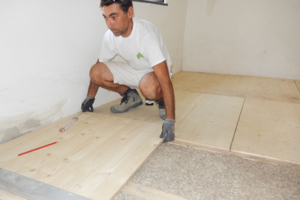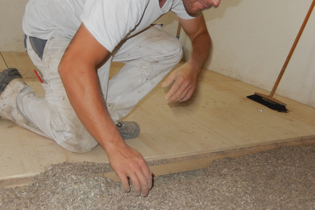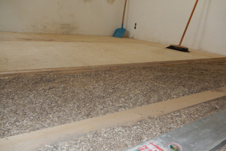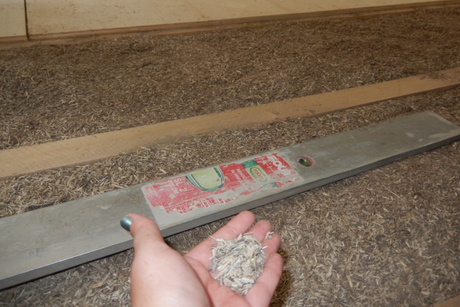 Als erster Schritt wurde nun im künftigen Wohn-/Schlafbereich eine Hanf-Lehm-Schüttung als Fußbodendämmung eingebracht. Weitere ökologische Maßnahmen werden folgen. Der Gesundheit zuliebe!