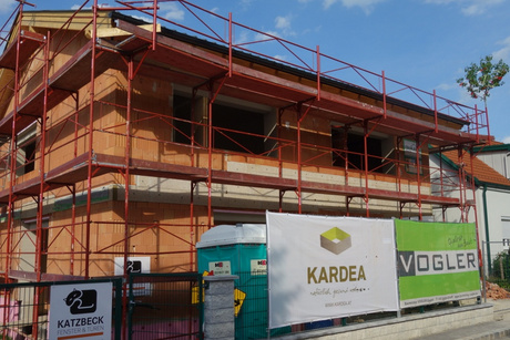 Nachdem Ende des letzten Jahres mit den Aushubarbeiten und der Bodenplatte begonnen wurde, konnte der Ziegelrohbau von Familie Köppl rasch aufgestellt werden. Nach Fertigstellung des Dachstuhls lud die Bauherrnfamilie traditionsgemäß zur Dachgleichenfeier.