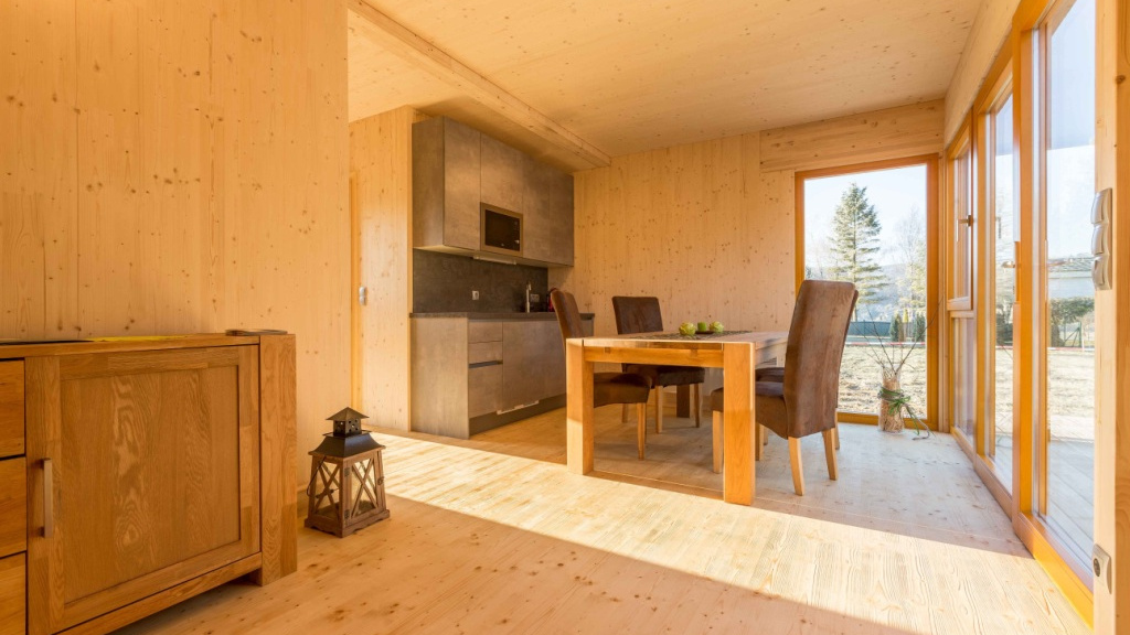 Denn wer in einem KARDEA-Mobilheim wohnt, lebt in einem echten Naturwunder. Natur steckt in den Wänden. Im Dach. Im Dämmmaterial. Holz bildet dabei das Herzstück unserer Mobilheime. Diese werden in Massivholzbauweise mit Flachdach und Holzfenstern errichtet. Naturholzflächen sorgen für ein angenehmes Raumklima im Innenbereich.